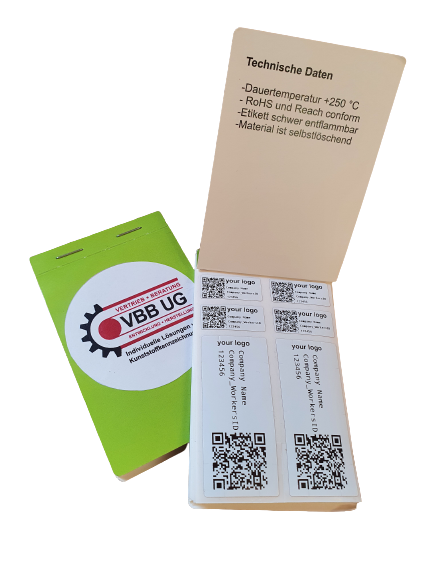Für diese Lösung werden Blöcke mit einzeln zu entnehmenden Hochtemperatur Etiketten angeboten. Durch Ihre kompakte Form lassen sich die Blöcke bequem vom Monteur beziehungsweise Prüfer mitführen.